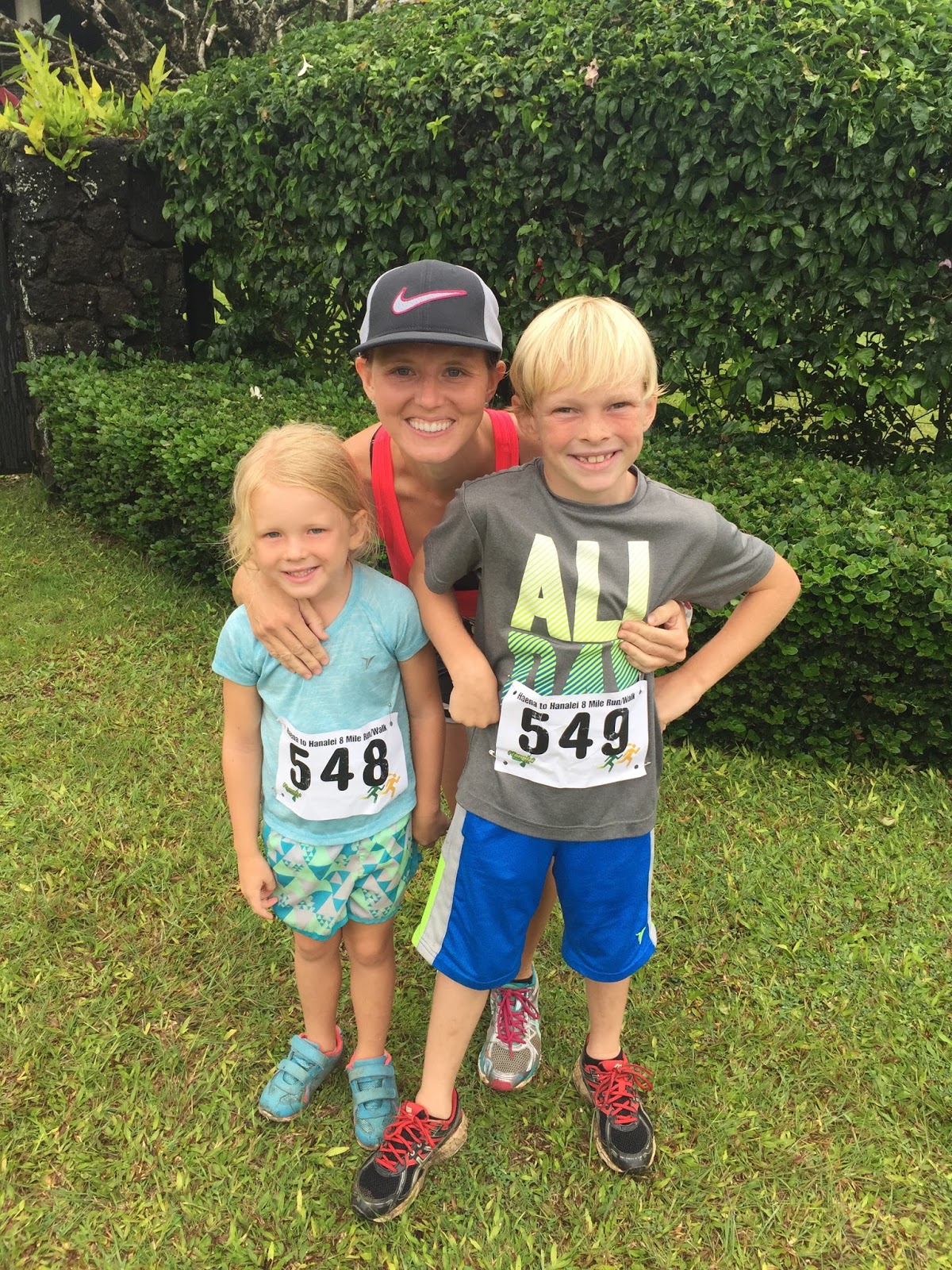 Haena to Hanalei Race is our favorite race of the year.  This year, Brady took one for the team and decided to run with the kids while I trained and participated in the 8-miler.  In preparation for the race, the kids went out and jogged around our neighborhood probably a dozen times.  They both wanted medals so badly!  Kate even asked me if I could please give her my medal if I got one, but with the times I was training at, it seemed highly unlikely and I worried that she was in for a let down.  Zachary was hoping to place in his age group and she was hoping to run without stopping.