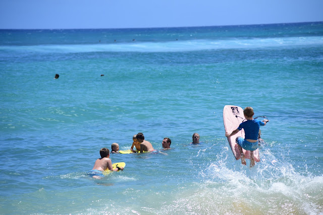 Saturday, we spent the gorgeous, cloudless day in Hanalei. It was so perfect and solidified my belief that there's no better place than Hanalei on a sunny day. We forgot Zachary's surf board and instead spend the day boogie boarding in the waves. Kate and I paddle boarded. She was a boogie boarding champ again that day.