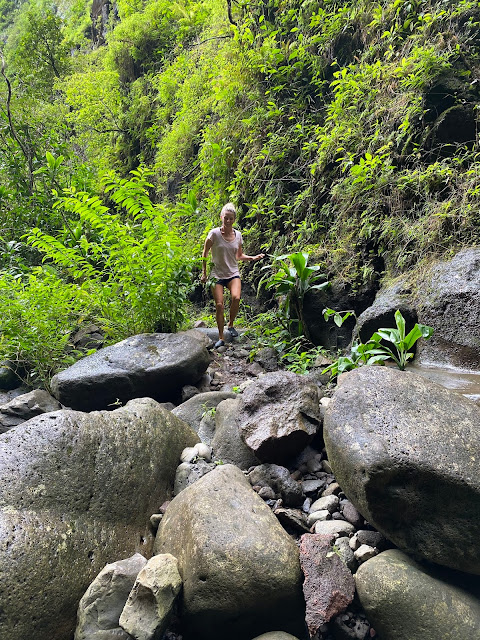Our closest friends hate to hike and talk about that regularly when it comes up. My kids now groan when hiking comes up as a possible activity for the day, forgetting that once they hit the trail, it is a party. Kate is less vocal and sometimes asks to hike with me. My friend Alisha texted me one evening to let me know she was going on a hike that is difficult to navigate the next day. It's been on my adventure wish list. I made arrangements for Roxy and Owen, rushed off to buy Kate shoes that would work better (there is exactly one store on island that sells tennis shoes), packed snacks, wrote notes, and thought it all seemed like a lot of hassle and it sure better be worth it. I should know by now: it is always worth it.