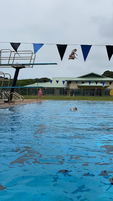 I did not think Owen would jump off the higher diving board but after watching Kate, he marched right up and jumped with zero hesitation. Parents standing by were shocked.