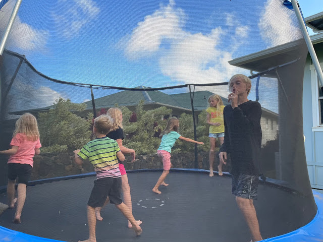 Our trampoline was so happy, too. It only gets bounced on when people are over, and the girls were in and out 20 times a day.
