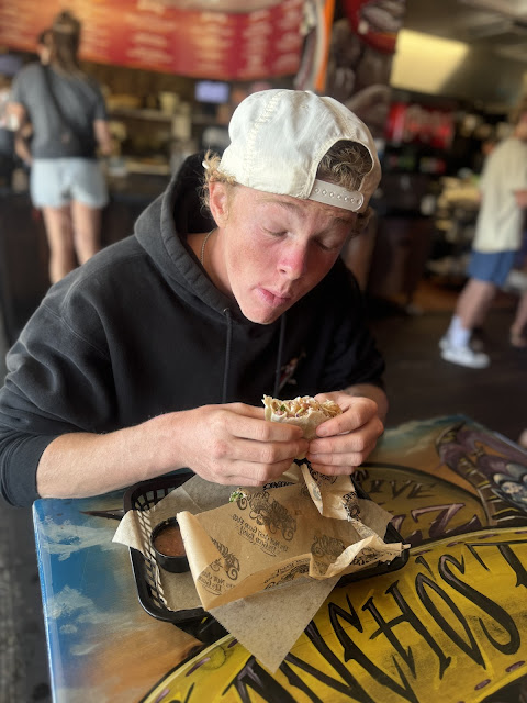 The next morning was checkout, and we went walking again, gathered our belongings, and headed to Huntington Pier to surf one last time. Kate joined the surf party and I loved watching her back in action, too. One last meal for Mediterranean excellence at Angry Al's before leaving for the airport.