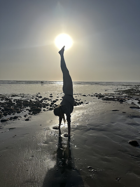 Evening walk complete with senior pic moments for Elise, leaps, exploring rocks, playing with phone settings for the best evening capture, races in the sand, and a sunset.